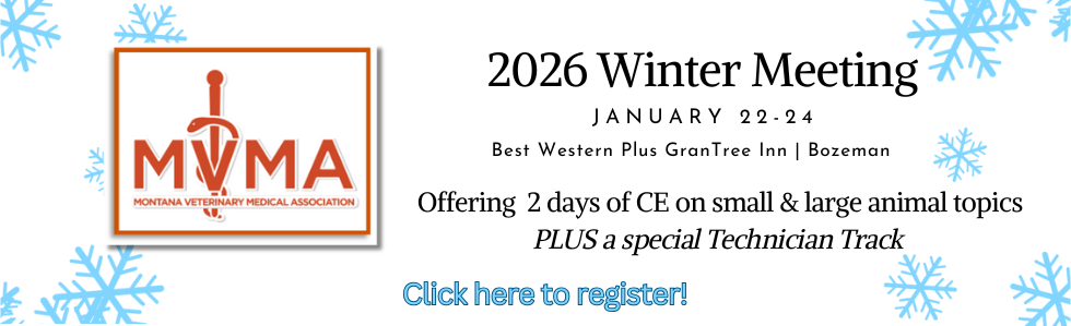 Lodging: A limited number of discounted rooms is available at the Bozeman Best Western Plus GranTree Inn for $119/night plus taxes & fees. Rooms are available until sold out or December 22, so make reservations early! To reserve, contact the hotel at (405) 587-5261 and refer to the MVMA Room Block. Questions? Contact the MVMA office at [email protected] or (406) 447-4259. Thank you, Winter Meeting Sponsors!